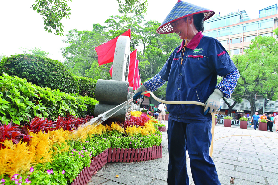 惠州西湖景區(qū)內(nèi)保潔工作人員。惠州日報記者張藝明 攝