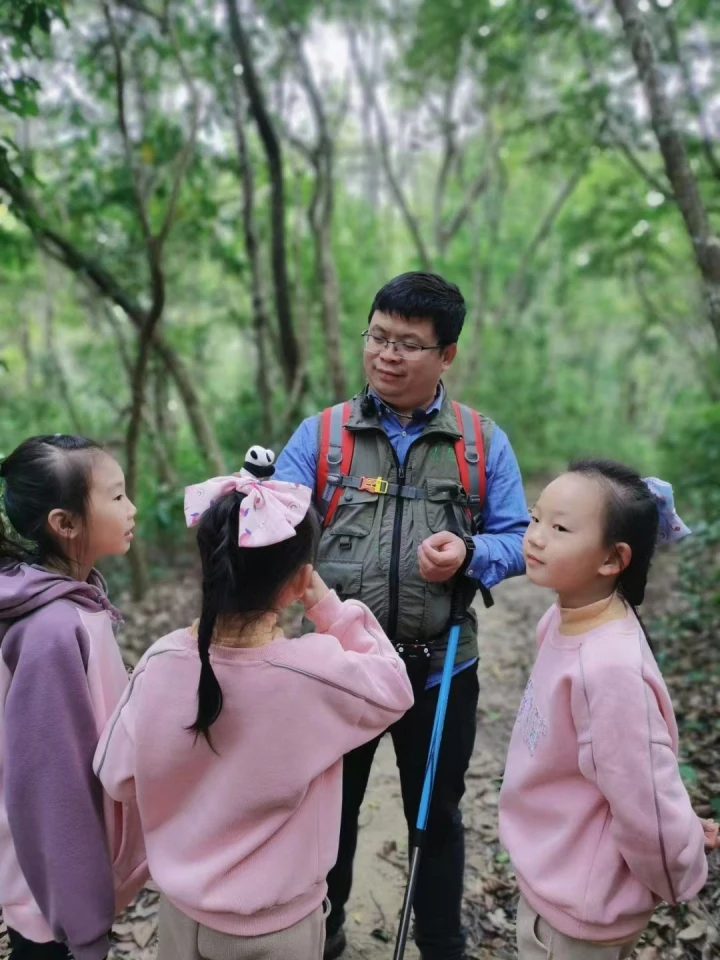 2020年,鄒忠典開(kāi)始承接惠州市內(nèi)自然保護(hù)區(qū)的科普宣教公益活動(dòng),邀請(qǐng)學(xué)生等團(tuán)體走進(jìn)山林,開(kāi)展自然教育,了解生態(tài)系統(tǒng)、本地動(dòng)植物資源,兼顧護(hù)林員和森林公安日常工作等。他還把森林的知識(shí)帶進(jìn)學(xué)校開(kāi)展科普活動(dòng),教導(dǎo)學(xué)生們要熱愛(ài)自然,自覺(jué)減少對(duì)自然的傷害。