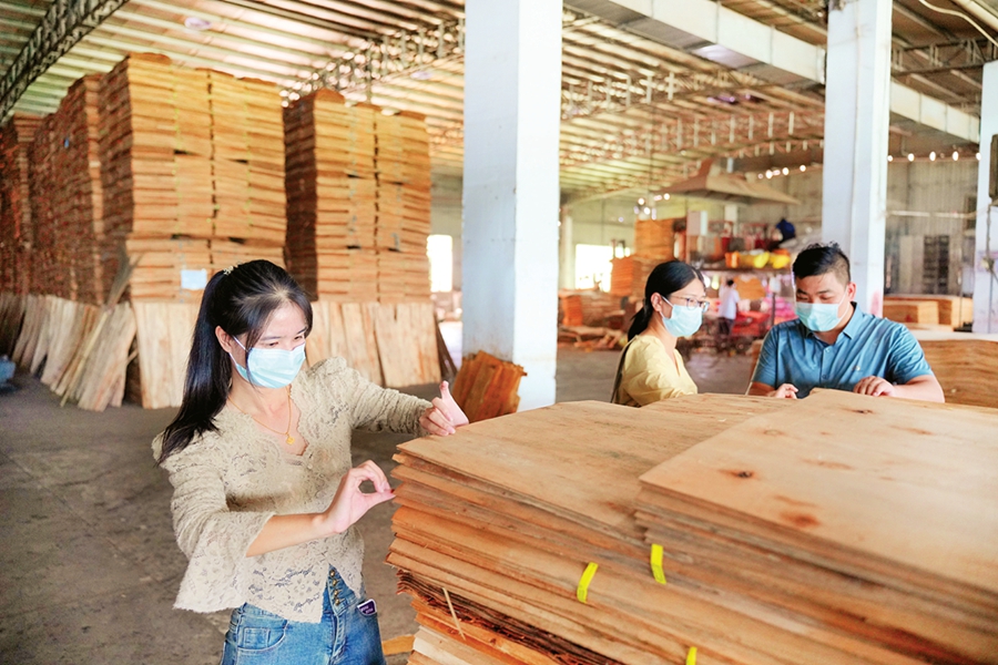 吳偉通將每道工序的具體要求編寫出來,如生產(chǎn)膠合板(模板)所需的膠水用量精準(zhǔn)到克,膠水與單板的黏合時(shí)間精確到分鐘,以統(tǒng)一的工藝標(biāo)準(zhǔn),保障產(chǎn)品質(zhì)量的穩(wěn)定。工藝升級,質(zhì)量提高,產(chǎn)品市場需求不斷增加,到2020年,南寧的木材加工廠已實(shí)現(xiàn)年產(chǎn)值4000多萬元。