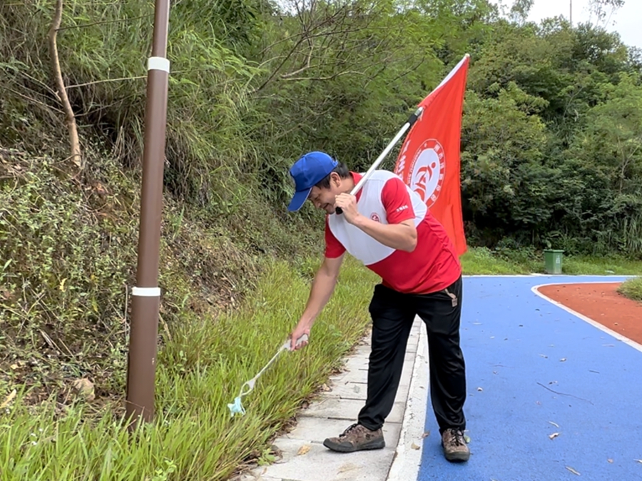 活動(dòng)現(xiàn)場(chǎng),志愿者在撿跑。惠州日?qǐng)?bào)記者肖泓 攝