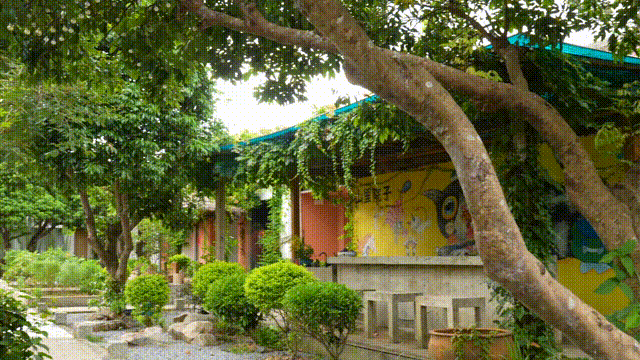 這間民宿是用鎮(zhèn)內(nèi)以前的小學(xué)改造而成,如Phil所說(shuō),屋頂是用傳統(tǒng)的中國(guó)建筑材料——瓦片制作而成,因此當(dāng)旅客進(jìn)入房間時(shí),一股清涼的氣息便撲面而來(lái),可以瞬間將身上的燥熱一掃而空。在夜間,你甚至可以不開(kāi)空調(diào)。