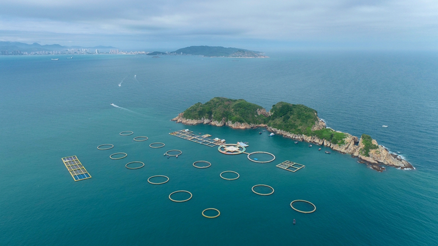 位于惠東港口的粵港澳流動(dòng)漁民深海網(wǎng)箱養(yǎng)殖產(chǎn)業(yè)園。惠州日?qǐng)?bào)記者楊建業(yè) 黃鑫威攝