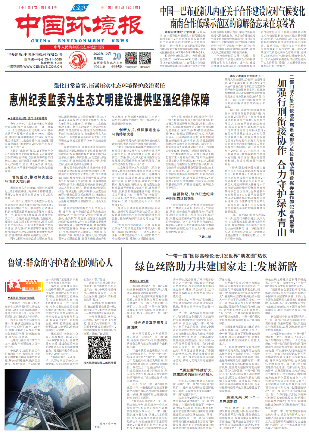 10月20日,《中國(guó)環(huán)境報(bào)》在頭版頭條推出報(bào)道《惠州紀(jì)委監(jiān)委為生態(tài)文明建設(shè)提供堅(jiān)強(qiáng)紀(jì)律保障》。報(bào)道介紹了惠州市紀(jì)委監(jiān)委強(qiáng)化日常監(jiān)督,壓緊壓實(shí)生態(tài)環(huán)境保護(hù)政治責(zé)任,為生態(tài)文明建設(shè)提供堅(jiān)強(qiáng)紀(jì)律保障的生動(dòng)實(shí)踐。現(xiàn)全文轉(zhuǎn)載,以饗讀者。