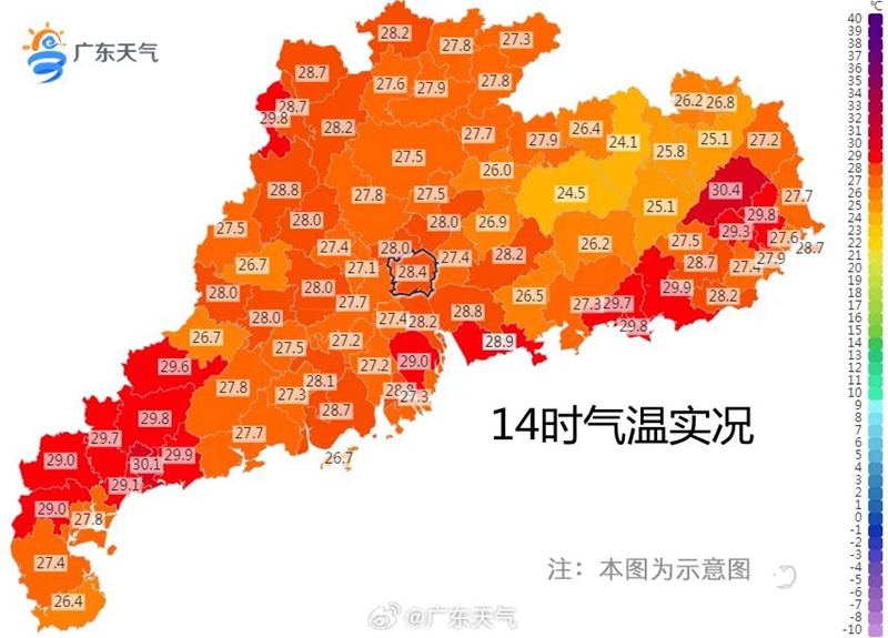 14時(shí)全國高溫榜廣東霸了6個(gè)位