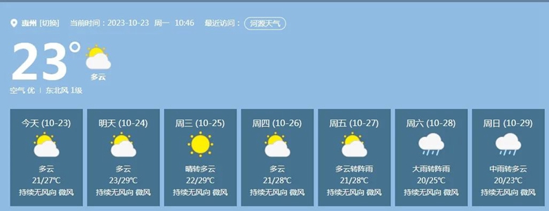 惠州具體天氣預(yù)報(bào):