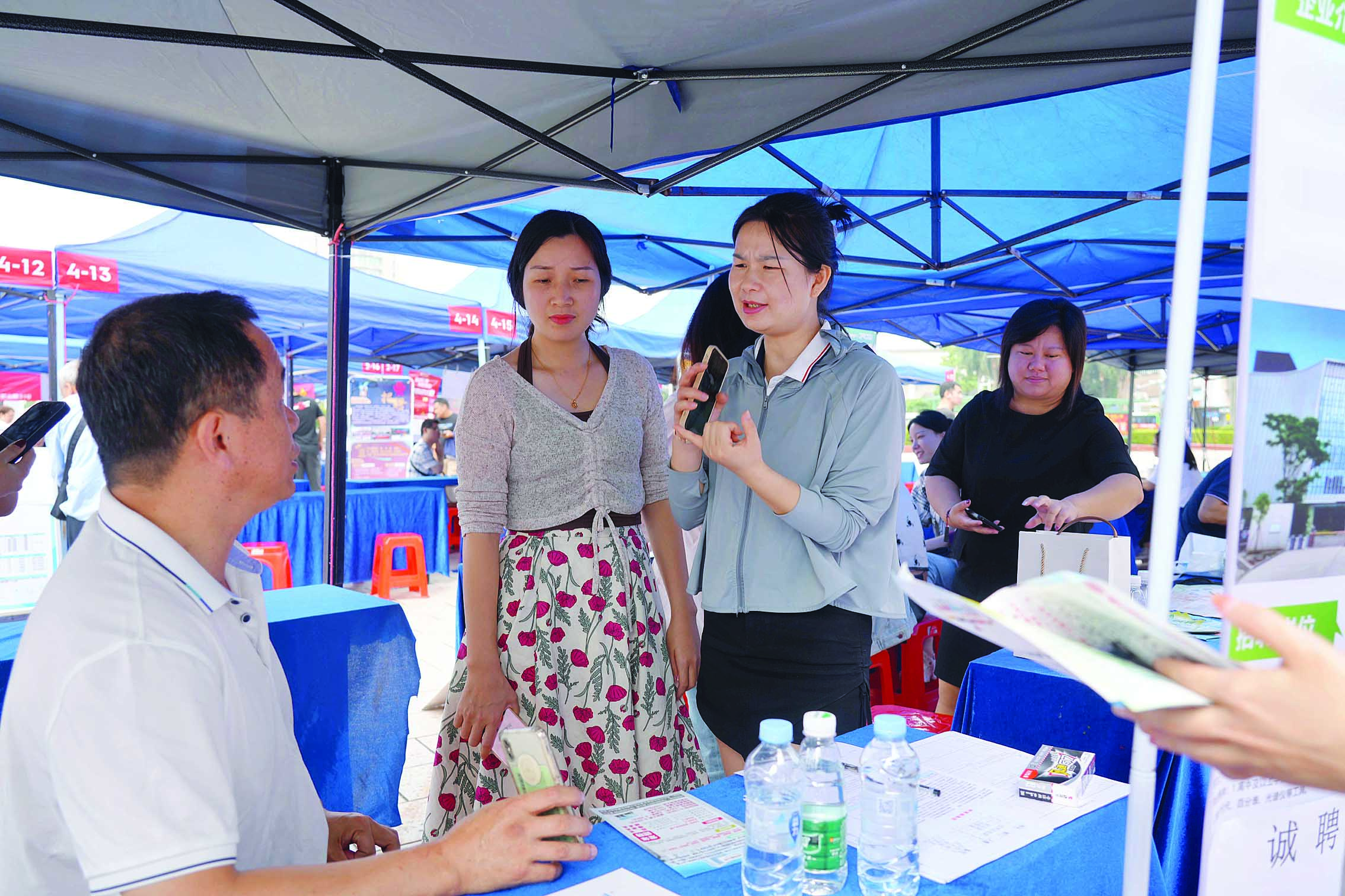 求職者向企業(yè)了解招聘信息。 惠州日報記者楊建業(yè) 攝