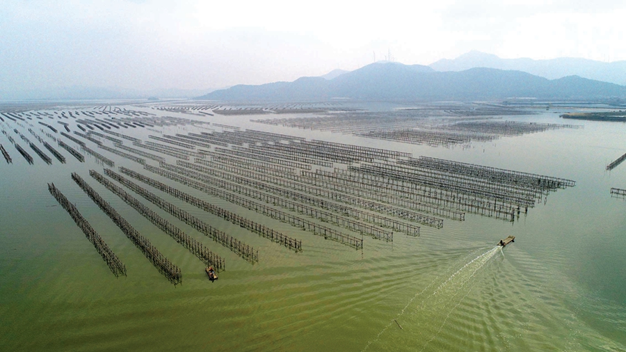 惠東縣鐵涌鎮(zhèn)赤岸村的連片蠔排迎來收獲季節(jié)。惠州日?qǐng)?bào)記者楊建業(yè) 攝