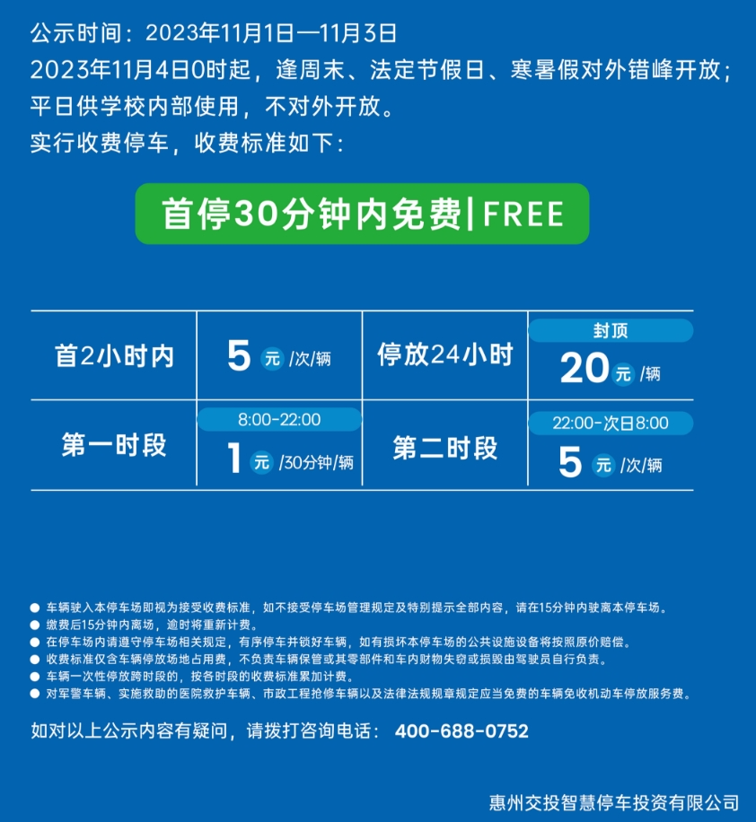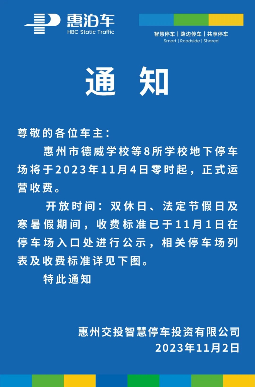 惠州惠泊車發(fā)布通知稱