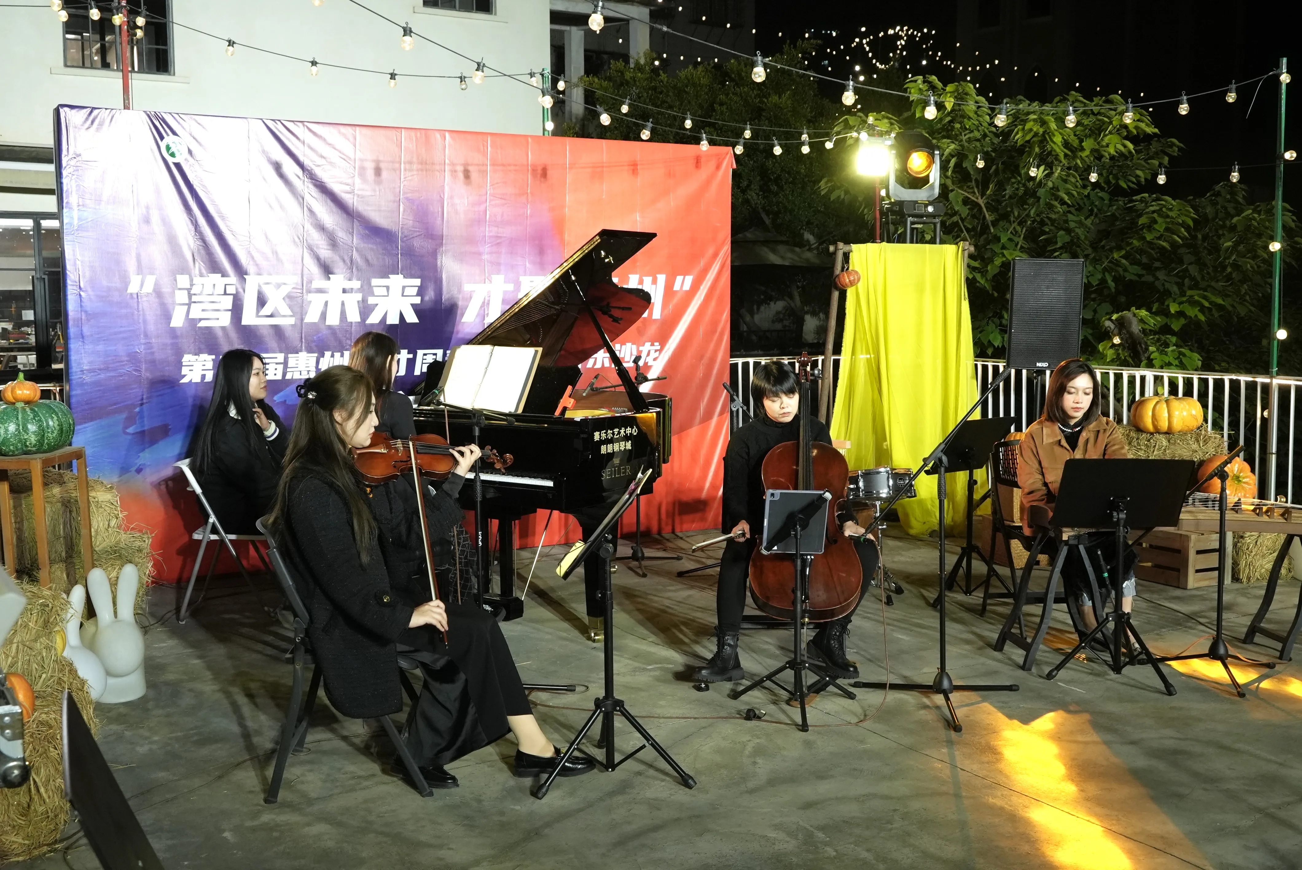 11月17日晚,位于市區(qū)橋東的野島文化生活社區(qū)比平日里更熱鬧一些。夜空下,燈光里,伴隨著《蘭亭序》悠揚(yáng)的樂聲響起,“灣區(qū)未來 才聚惠州”第二屆惠州人才周青年人才音樂沙龍拉開帷幕,80多名青年人才一起沉浸在由鋼琴、小提琴、大提琴、古箏等演奏的美妙音樂中。此次音樂沙龍由中共惠州市委人才工作領(lǐng)導(dǎo)小組辦公室指導(dǎo)、共青團(tuán)惠州市委員會(huì)和惠州市青年聯(lián)合會(huì)主辦。