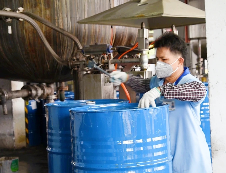 惠州市固德爾合成材料有限公司工作人員正在出料。