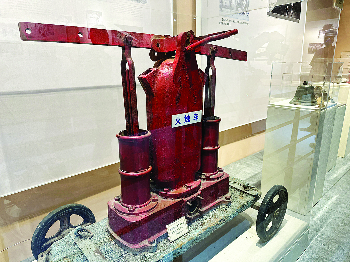 消防,也稱火政,我國近代史上最早的消防隊(duì)是成立于1902年的天津南段巡警總局消防隊(duì)。記者發(fā)現(xiàn),當(dāng)時(shí)的滅火設(shè)備是由兩根銅管套在一起,里面裝有活塞裝置,使用時(shí)把下端放在水桶里,即可實(shí)現(xiàn)滅火,所以也叫“激桶”。后來,“激桶”進(jìn)化成火燭車,實(shí)現(xiàn)更加靈活地滅火。