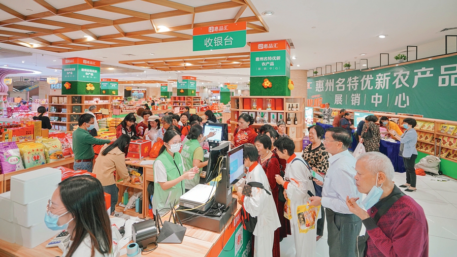 市民在惠州名特優(yōu)新農(nóng)產(chǎn)品展銷中心采購(gòu)黔西南州農(nóng)副產(chǎn)品。惠州日?qǐng)?bào)記者周楠 王建橋 攝
