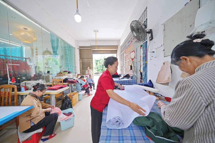 王文蓮以前在廣州打工,這兩年為了照顧家庭回到冊(cè)亨。2023年5月,落戶冊(cè)亨縣高洛街道安置區(qū)的貴州乾航包袋實(shí)業(yè)有限公司投產(chǎn)了,大量招收當(dāng)?shù)毓と恕M跷纳彽弥笄皝?lái)應(yīng)聘,成為第一批進(jìn)廠的工人。“騎電動(dòng)車,我只要5分鐘就可以來(lái)到廠里上班。”王文蓮說(shuō),“每天能賺到150元以上,還能照顧老人小孩,挺好的。”