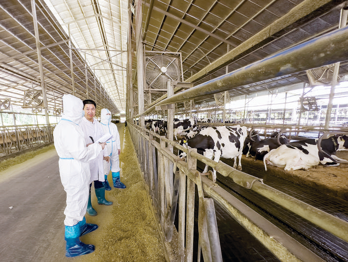 惠州海關(guān)關(guān)員在奶牛場開展監(jiān)管作業(yè)。 惠州日報記者劉煒煒 通訊員張小雄 攝