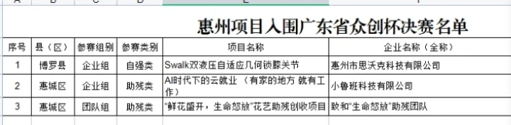 11月28日,2023年廣東“眾創(chuàng)杯”創(chuàng)業(yè)創(chuàng)新大賽殘疾人公益賽復(fù)賽在廣州舉行。120個(gè)項(xiàng)目分4組進(jìn)行比拼,爭(zhēng)奪決賽32強(qiáng)名額。最終經(jīng)過精彩角逐,惠州共有3個(gè)項(xiàng)目闖入決賽。