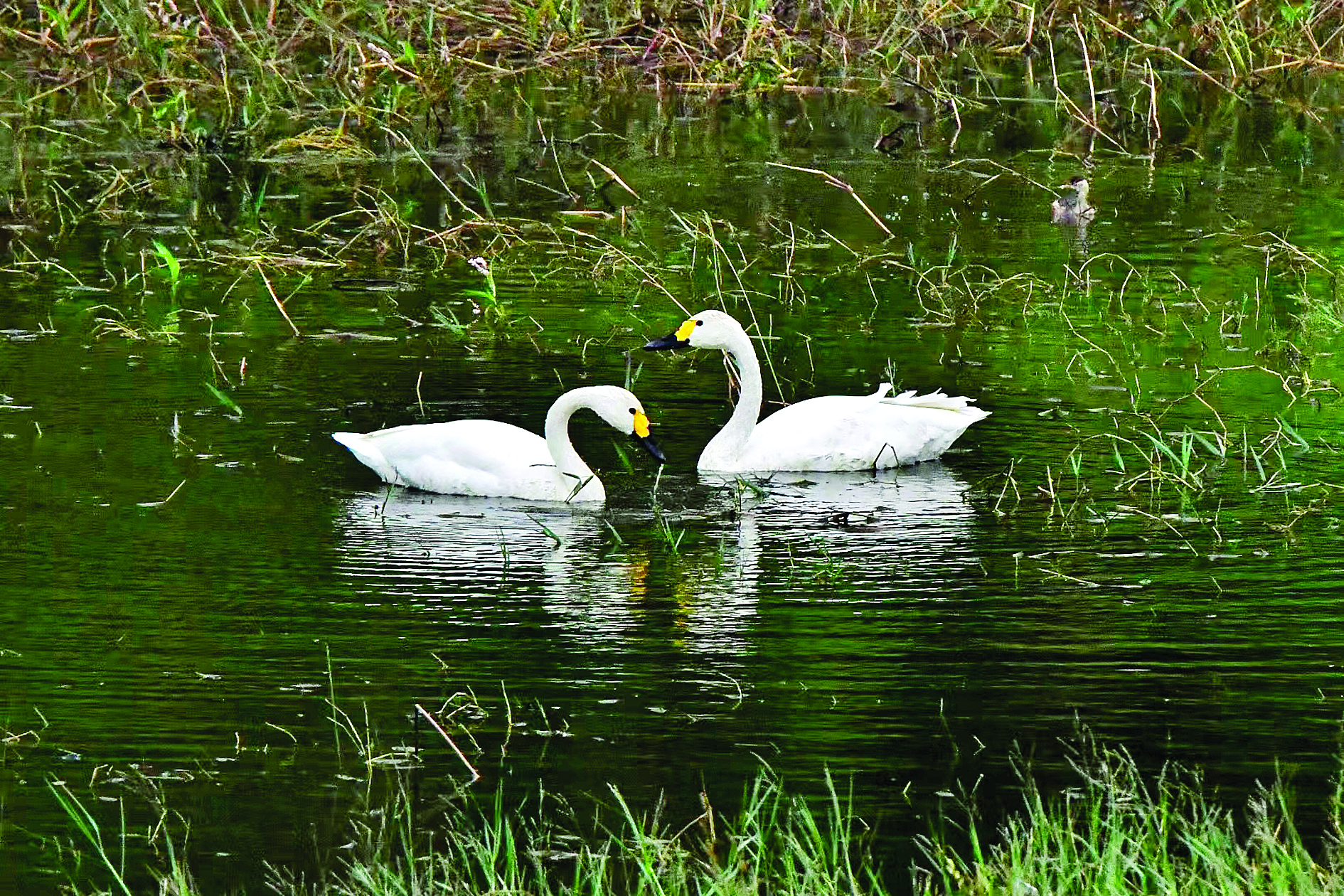 在西枝江惠城馬安上寮村段水域拍攝到的兩只白天鵝。吳偉榮 攝