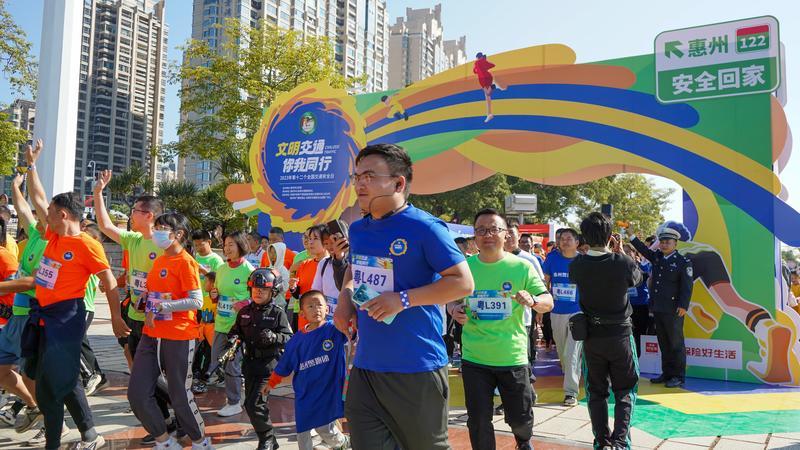 歡樂跑環(huán)節(jié),市民一邊跑步一邊學習交通安全知識。 惠州日報記者陳濤 攝