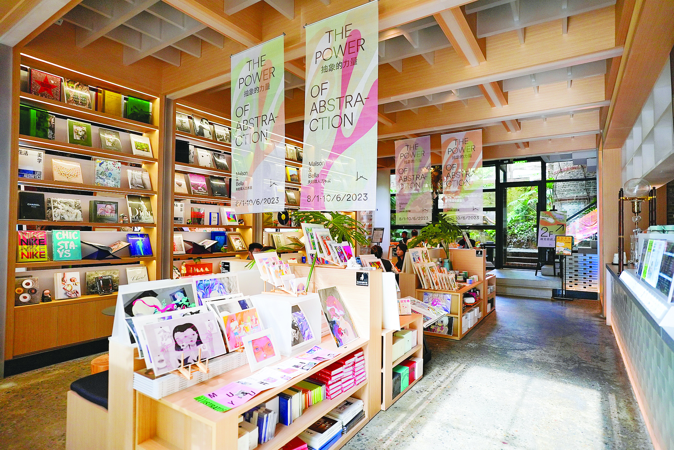 走進(jìn)書店,隨處可見歲月的痕跡。陽(yáng)光穿過玻璃墻,灑在店內(nèi)的手繪明信片上,貨架上陳列著設(shè)計(jì)、建筑、插花等書籍,桌上擺著五彩斑斕的插畫和馬克杯,而在過道旁則是各種手沖咖啡,店員在制作創(chuàng)意咖啡和糕點(diǎn)。
