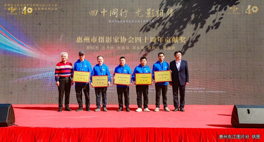 慶典儀式上,為惠州攝影事業(yè)作出貢獻的優(yōu)秀攝影人獲頒獎杯及證書,獎項包括“橋勝杯”第四屆惠州市攝影藝術(shù)展優(yōu)秀作品獎、四十年優(yōu)秀會員獎、四十周年貢獻獎、四十周年杰出貢獻獎。