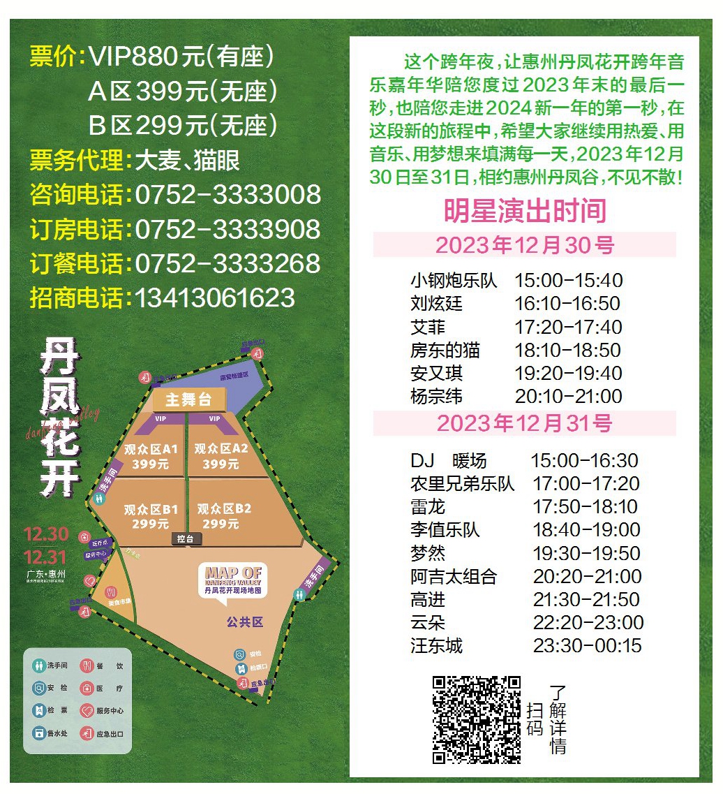 2023年12月30日至31日,音樂、美食、集市、星空、露營、花境、煙花……屆時(shí),在精彩紛呈的節(jié)目中,惠州勁爆的歡樂嘉年華震撼來襲!讓我們相約惠州丹鳳谷,不見不散!