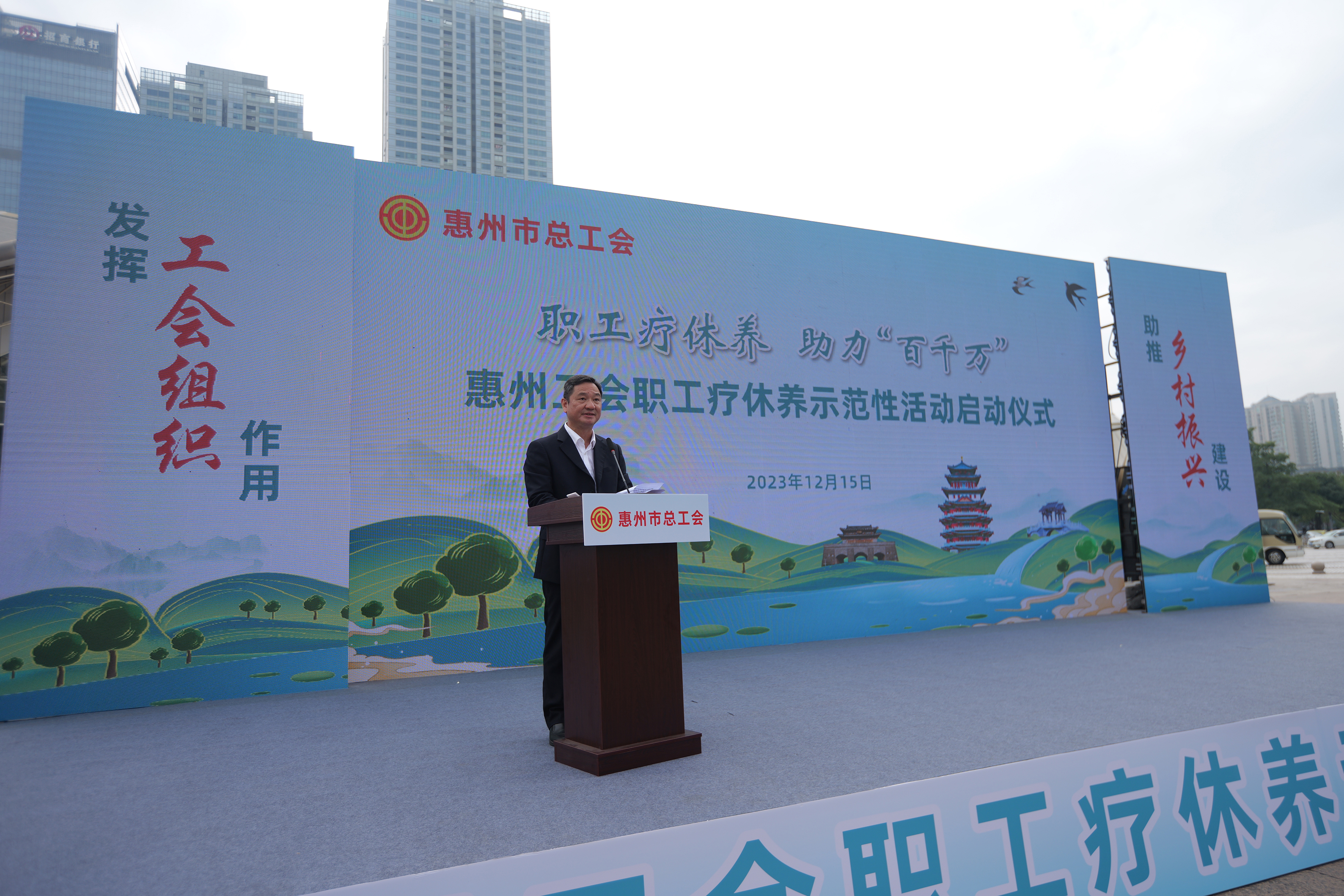 惠州工會職工鄉(xiāng)村療休養(yǎng)示范性活動啟動儀式現場。