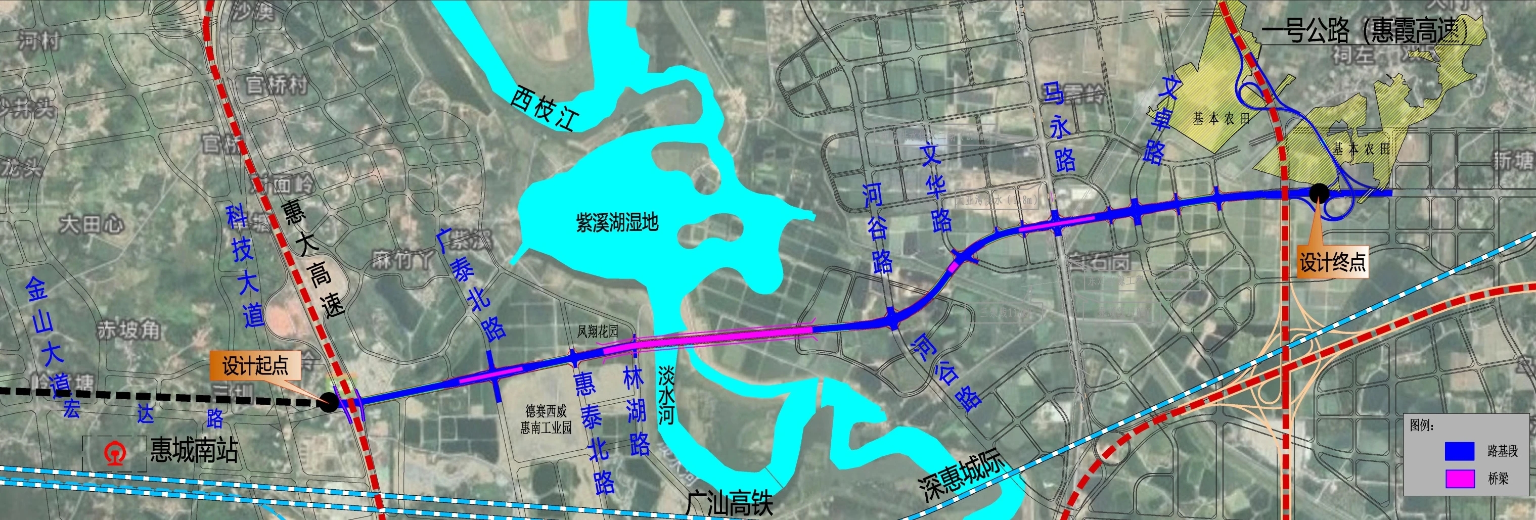 一期工程起于惠大高速西側(cè),終于規(guī)劃林湖路,計劃2025年完工
