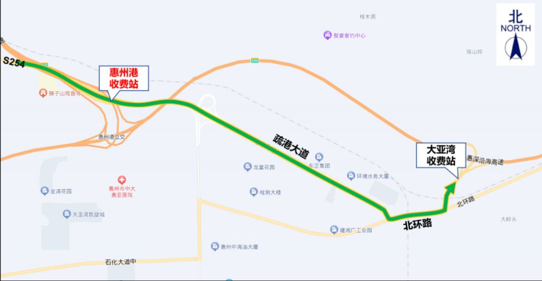1.惠州港收費(fèi)站:交通管制時(shí)間內(nèi),原計(jì)劃從惠州港收費(fèi)站上高速的貨車,可通過疏港大道→北環(huán)路→惠深沿海高速大亞灣收費(fèi)站上高速。