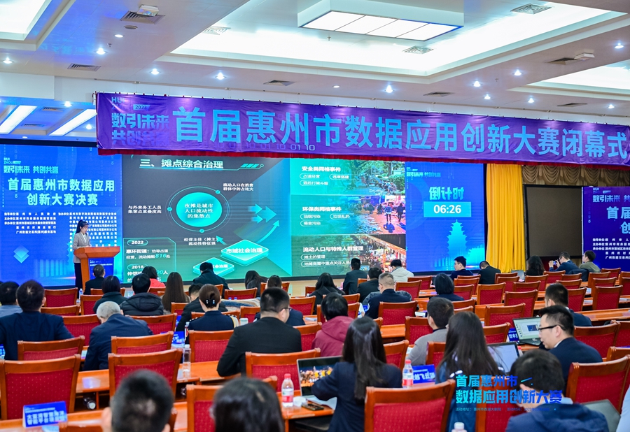 首屆惠州市數(shù)據(jù)應(yīng)用創(chuàng)新大賽閉幕現(xiàn)場(chǎng)。
