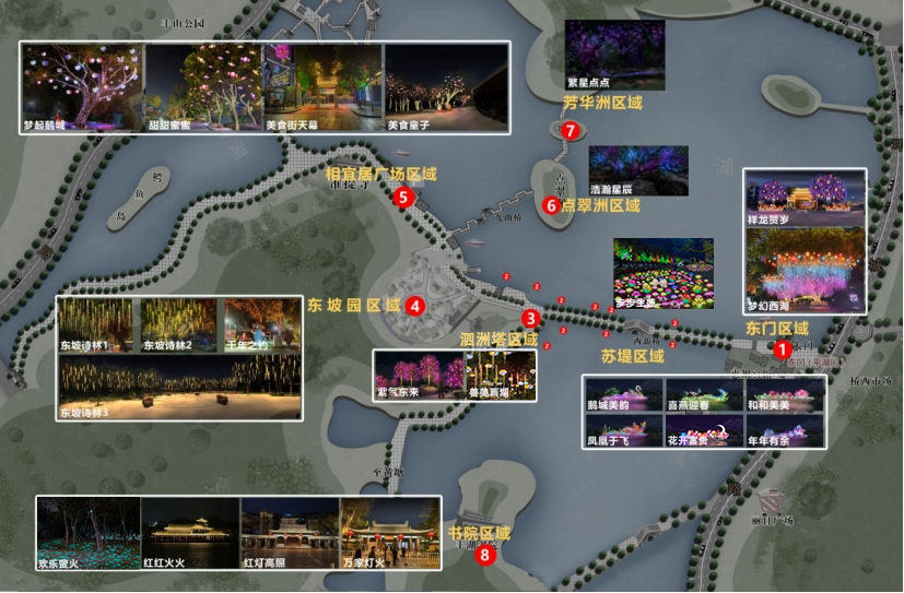 亮點四,倡導“節(jié)約、環(huán)保、低碳”理念。減少傳統(tǒng)燈組布展,充分利用現(xiàn)有常態(tài)化燈光和現(xiàn)代光影技術(shù),盡量以低成本低能耗投入來營造視覺效果,同時,通過增加文化藝術(shù)表演和東坡文化美食,營造濃厚的節(jié)日氛圍。