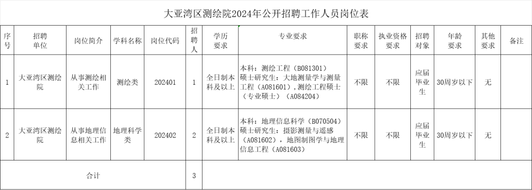 全日制本科測(cè)繪類/地理科學(xué)類專業(yè)應(yīng)屆畢業(yè)生生3名