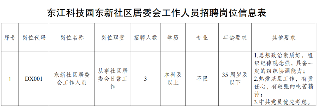 東江科技園東新社區(qū)居委會(huì)工作人員招聘