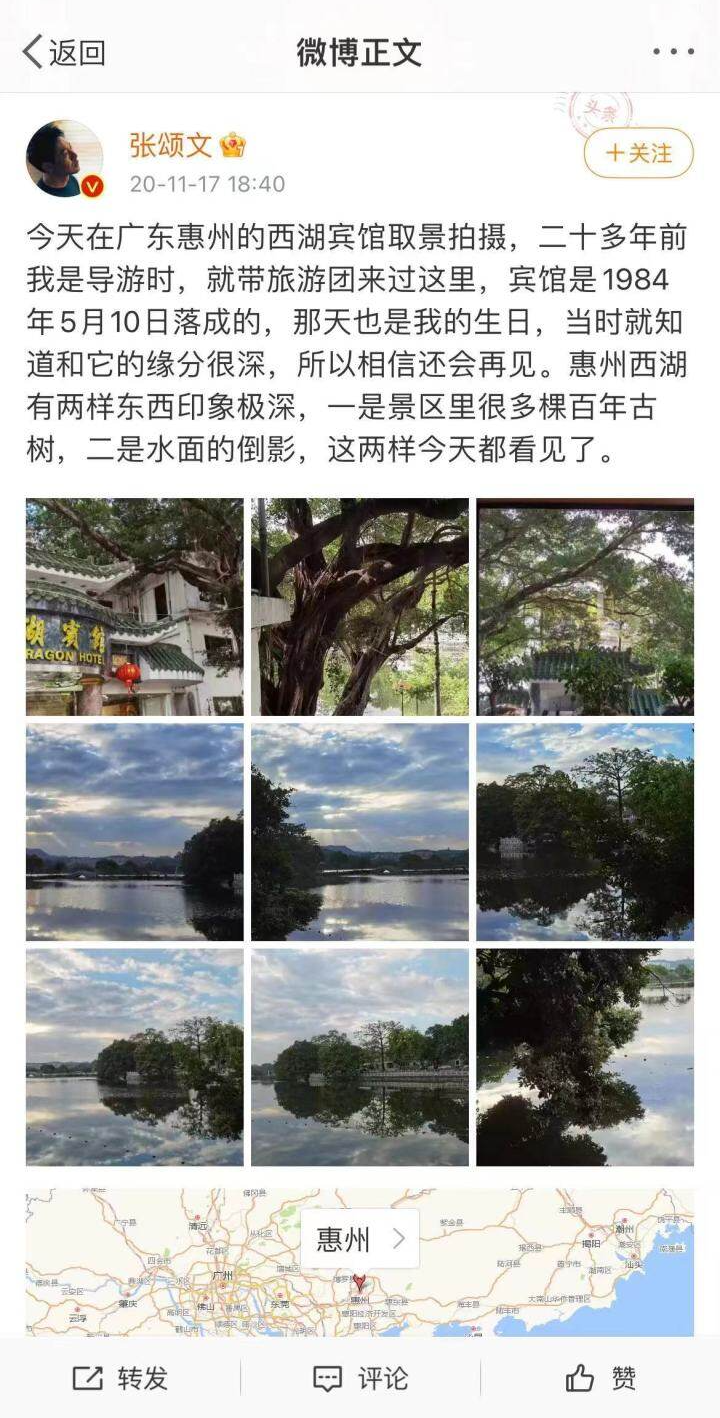 拍攝《掃黑決戰(zhàn)》期間張頌文多次發(fā)微博為惠州“代言”。