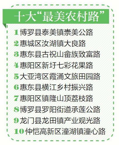惠州日報訊 (記者陳春惠 通訊員曹娟)記者昨日從市公路事務(wù)中心獲悉,惠州市2023年度十大“最美農(nóng)村路”出爐!為推動農(nóng)村公路高質(zhì)量發(fā)展,聚焦農(nóng)村公路“實(shí)、安、綠、美、融”的發(fā)展目標(biāo),2023年12月市公路事務(wù)中心面向全市評選建設(shè)成效突出、特色鮮明、路況優(yōu)良的十大“最美農(nóng)村路”。經(jīng)過資格審核、網(wǎng)絡(luò)投票、現(xiàn)場評分、核審公示等環(huán)節(jié)重重“考驗(yàn)”,博羅縣泰美鎮(zhèn)崇美公路等10條“最美農(nóng)村路”脫穎而出。