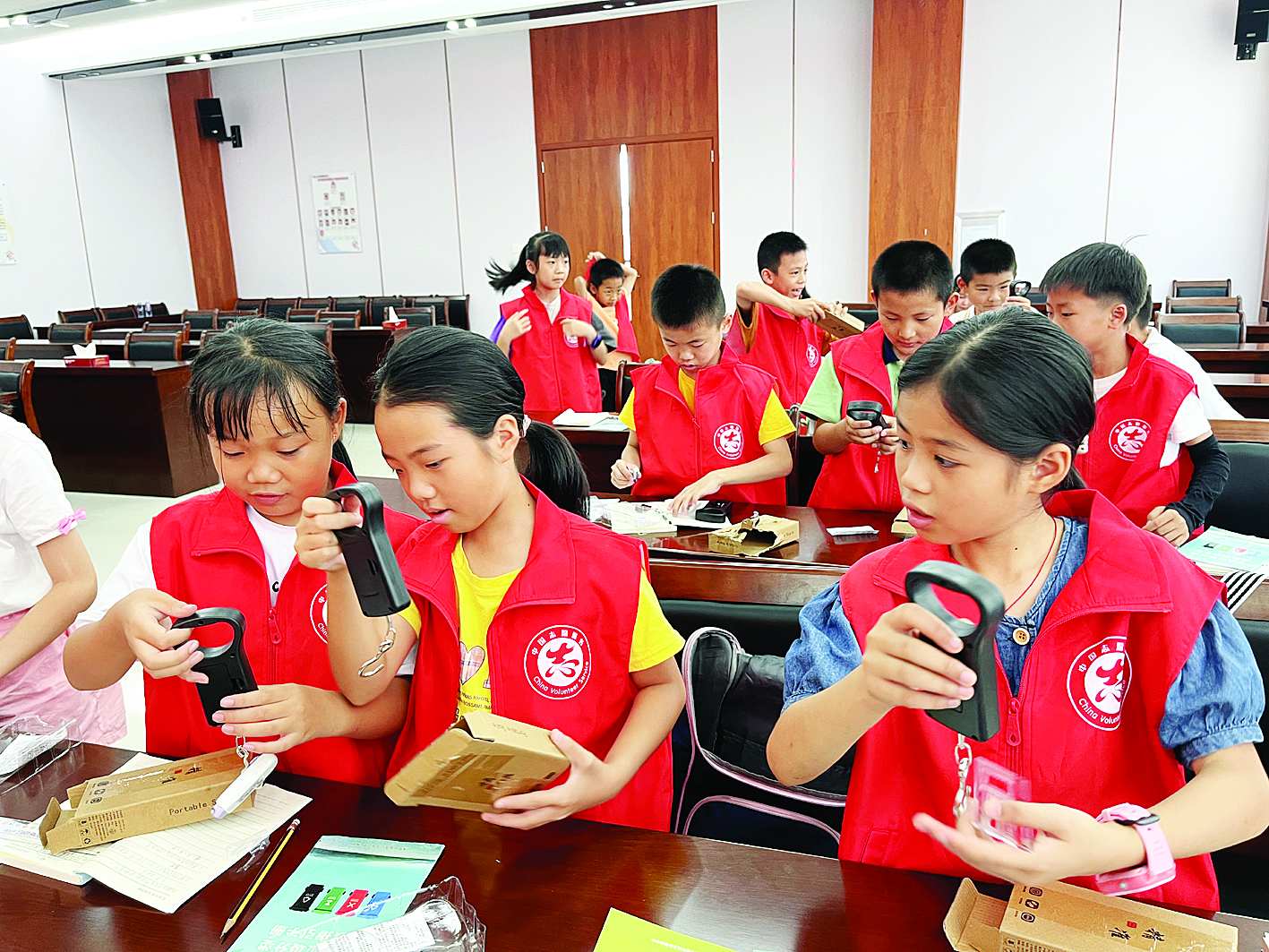 學(xué)生志愿者接受垃圾分類培訓(xùn)。