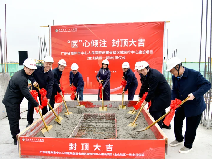 1月29日上午,隨著相關(guān)負(fù)責(zé)人及嘉賓揮鍬澆筑,惠州市中心人民醫(yī)院創(chuàng)建省級(jí)區(qū)域醫(yī)療中心項(xiàng)目(金山院區(qū)一期)主體工程順利封頂,比預(yù)定工期提早了5個(gè)月,提前完成2023年惠州市民生實(shí)事工作目標(biāo)。從一紙藍(lán)圖到群樓拔地而起,代表的不僅是我市的醫(yī)院規(guī)模擴(kuò)容,更意味著優(yōu)質(zhì)醫(yī)療資源輻射能力的提升,讓更多市民在“家門口”享受省級(jí)高水平醫(yī)院診療服務(wù)的愿景正一步步變?yōu)楝F(xiàn)實(shí)。