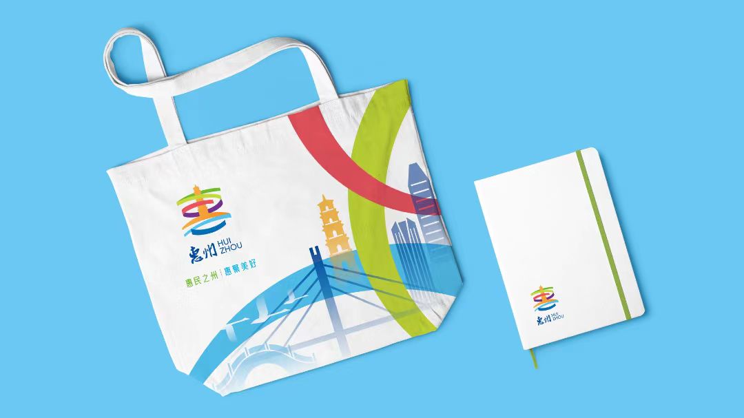 標(biāo)志由惠州地標(biāo)“泗洲塔”與象征美好匯聚、繁榮發(fā)展的環(huán)繞飄帶創(chuàng)意變化成“惠”字,強(qiáng)調(diào)城市品牌名稱。整體突出城市的歷史底蘊(yùn)與現(xiàn)代發(fā)展,構(gòu)成多元美好匯聚的視覺意象。其中,綠色飄帶描繪了城市的綠色自然與宜居生態(tài),紅色飄帶代表活力綻放的市花勒杜鵑,體現(xiàn)城市紅色文化,綠色飄帶象征城市的海洋文化與包容胸懷。視覺核心“泗洲塔”橙色的運(yùn)用,則意在彰顯城市底蘊(yùn)深厚的歷史文化內(nèi)涵。此外,標(biāo)志在字體設(shè)計(jì)上以蘇東坡“惠州”二字書法風(fēng)格為藍(lán)本,突出城市東坡文化。
