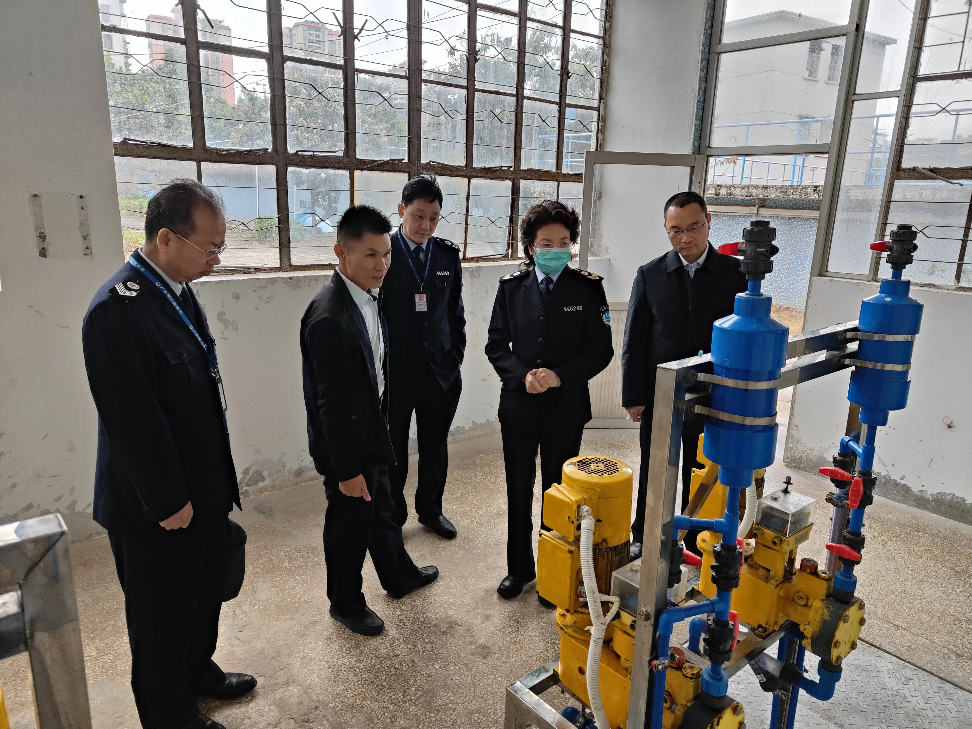 我市衛(wèi)生監(jiān)督機(jī)構(gòu)工作人員檢查水廠消毒設(shè)施運行情況。
