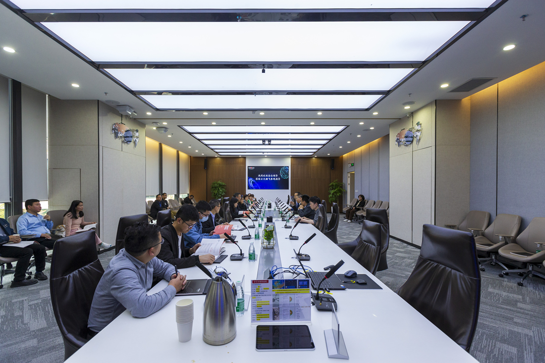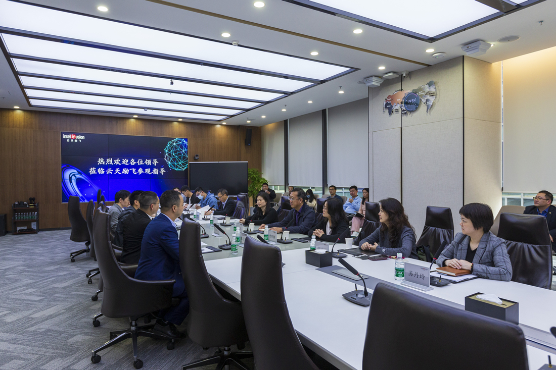惠州市數(shù)字文化產(chǎn)業(yè)協(xié)會(huì)走訪調(diào)研團(tuán)聽(tīng)取工作人員對(duì)云天勵(lì)飛的介紹。