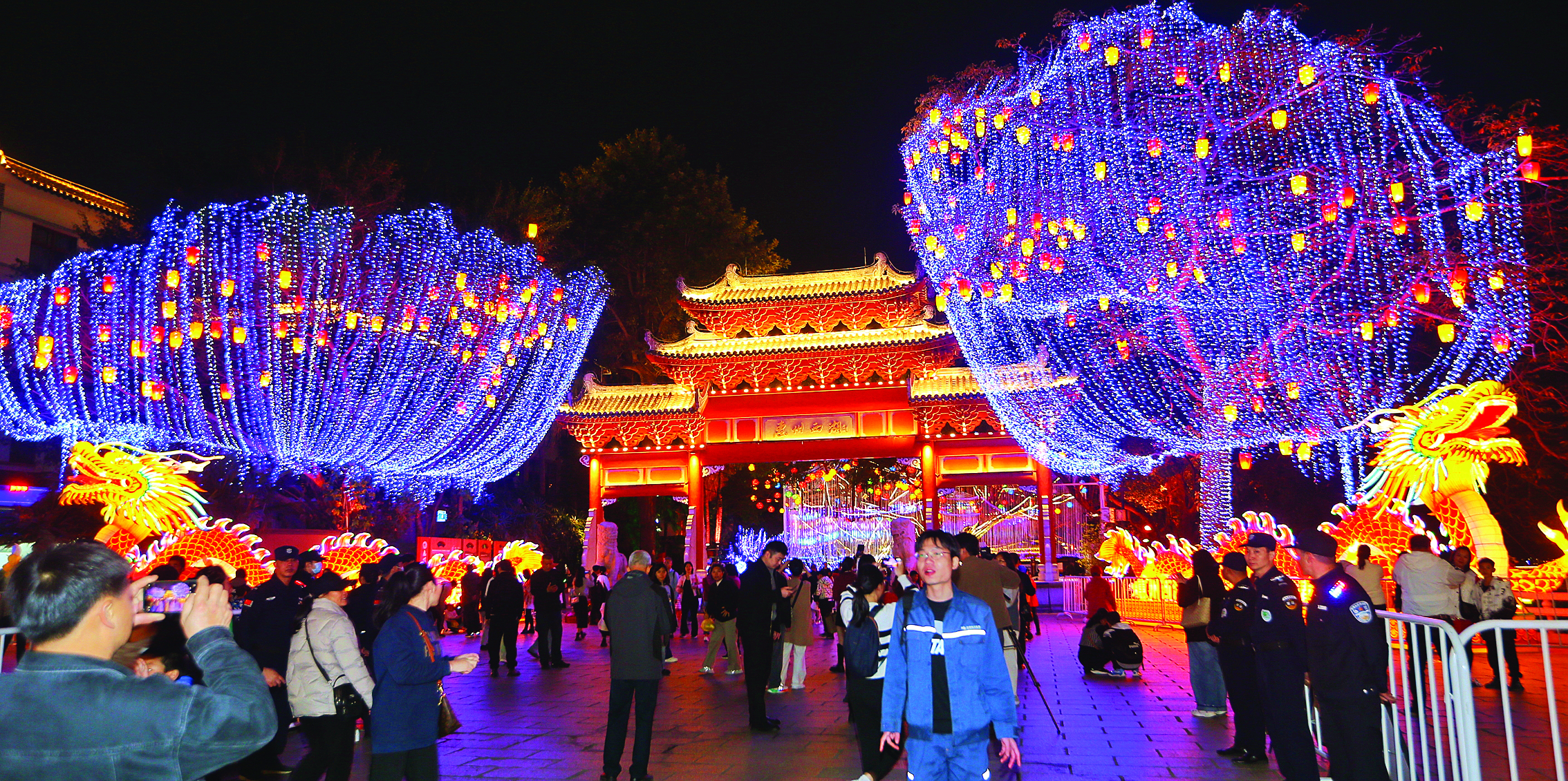 “請市民游客服從工作人員指引,注意安全。”李璐琦同時提醒市民,看管好自己的小孩,照顧好同行老人,注意景區(qū)內(nèi)上下臺階和斜坡,小心腳下安全。景區(qū)內(nèi)禁止吸煙、禁止觸摸花燈、禁止攀爬花燈燈組,請愛護(hù)景區(qū)花草樹木和公共設(shè)施,不要亂丟垃圾雜物,自覺維護(hù)環(huán)境衛(wèi)生,文明觀燈游園。