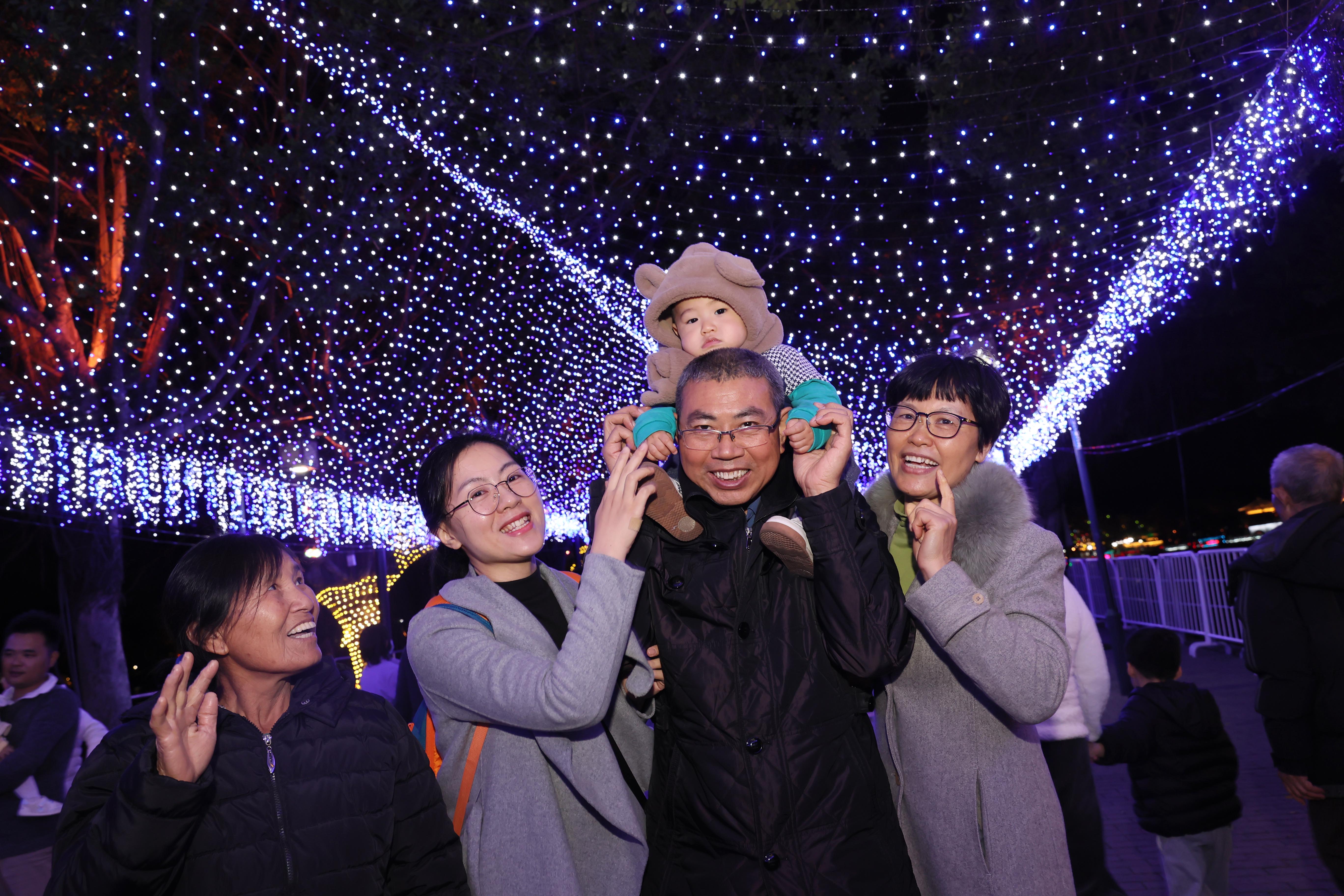 市民暢游“燈的海洋”。
