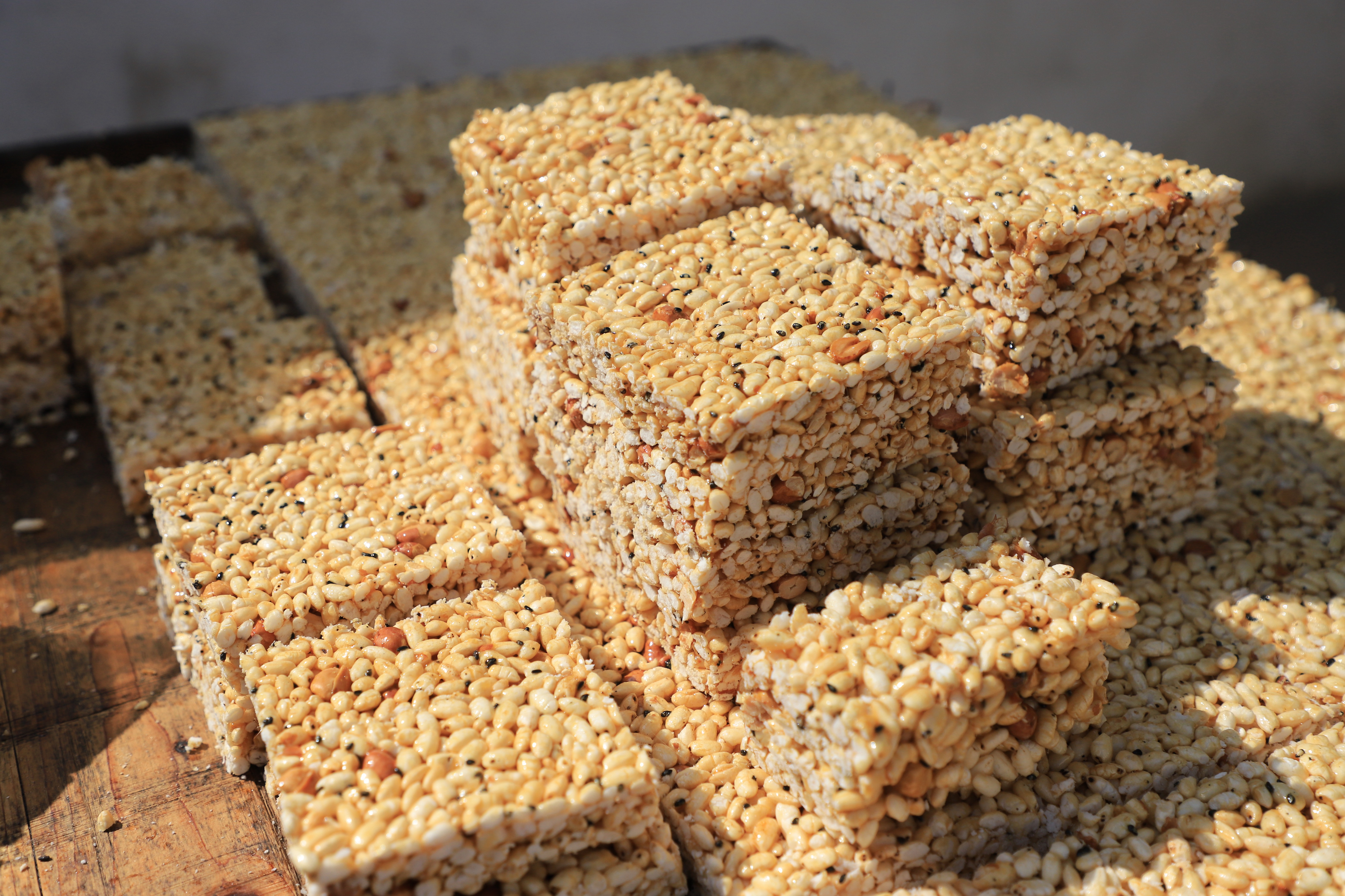 米澄,下村村的村民稱之為“米糕”,是博羅及周邊地區(qū)客家人過年時必不可少的一種小吃,主要由米和糖制作而成,外加一些花生、芝麻等配料。