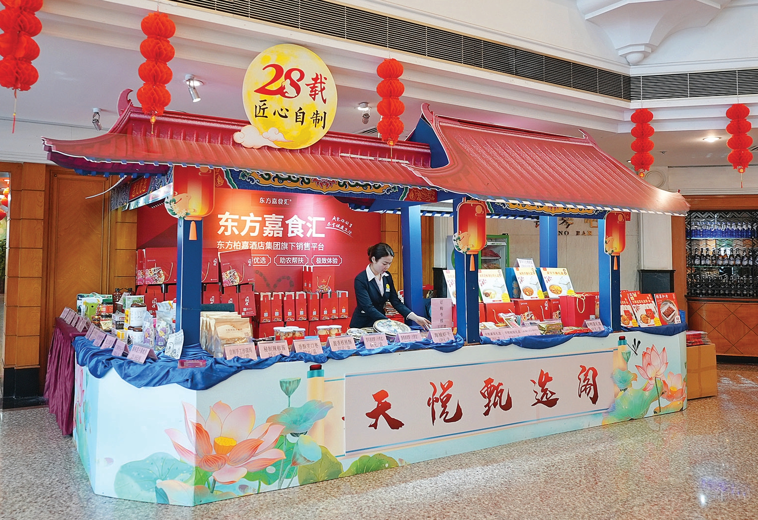 走進(jìn)惠州天悅(嘉柏)大酒店大堂,映入眼簾的首先是一棵高大的桃樹,樹上掛滿了花蕾和紅色利是封,加上燈籠和年花,濃濃的新春氣息撲面而來。“我們20多個包廂全部被預(yù)訂了,大廳也基本滿了。”惠州天悅(嘉柏)大酒店餐飲總監(jiān)楊鵬介紹,預(yù)訂年夜飯的,不僅有家庭,還有一些企業(yè)單位,“企業(yè)單位一般會訂好幾桌,組織留崗員工一起吃年夜飯。”