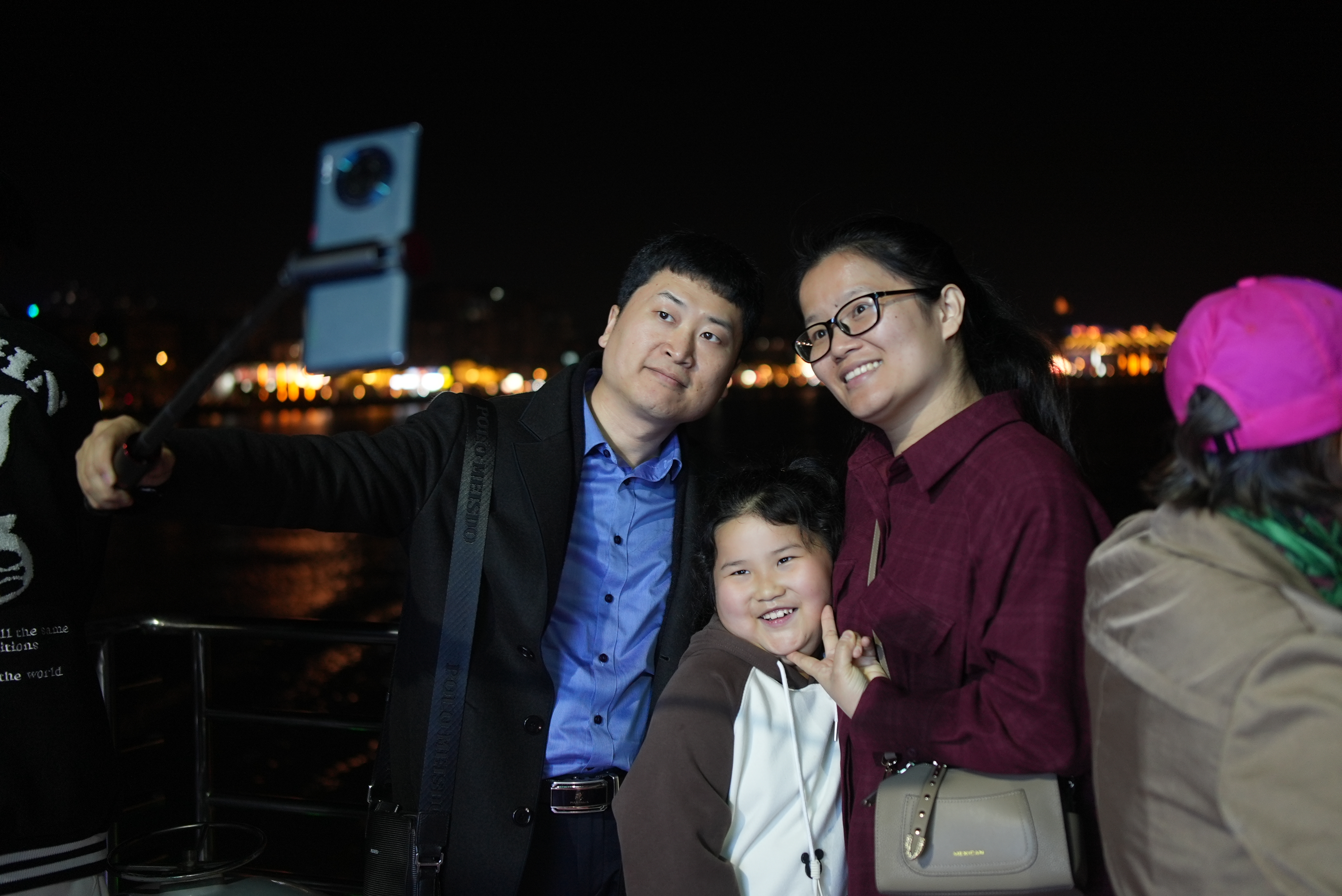 春節(jié)假期,每當(dāng)夜色漸暗,華燈初上,合江樓東江邊上,前來體驗“東江游”游船項目的市民和游客開始排隊買票,準(zhǔn)備觀賞惠州流光溢彩的美麗夜景。來自河南駐馬店的游客趙紅星,今年他們一家三口來到惠州歡度春節(jié),大年初三晚上登上東江游船,欣賞惠州夜景。“坐在船上,觀看東江兩岸燈光璀璨,美不勝收,心情也很愜意。”趙紅星高興地說。