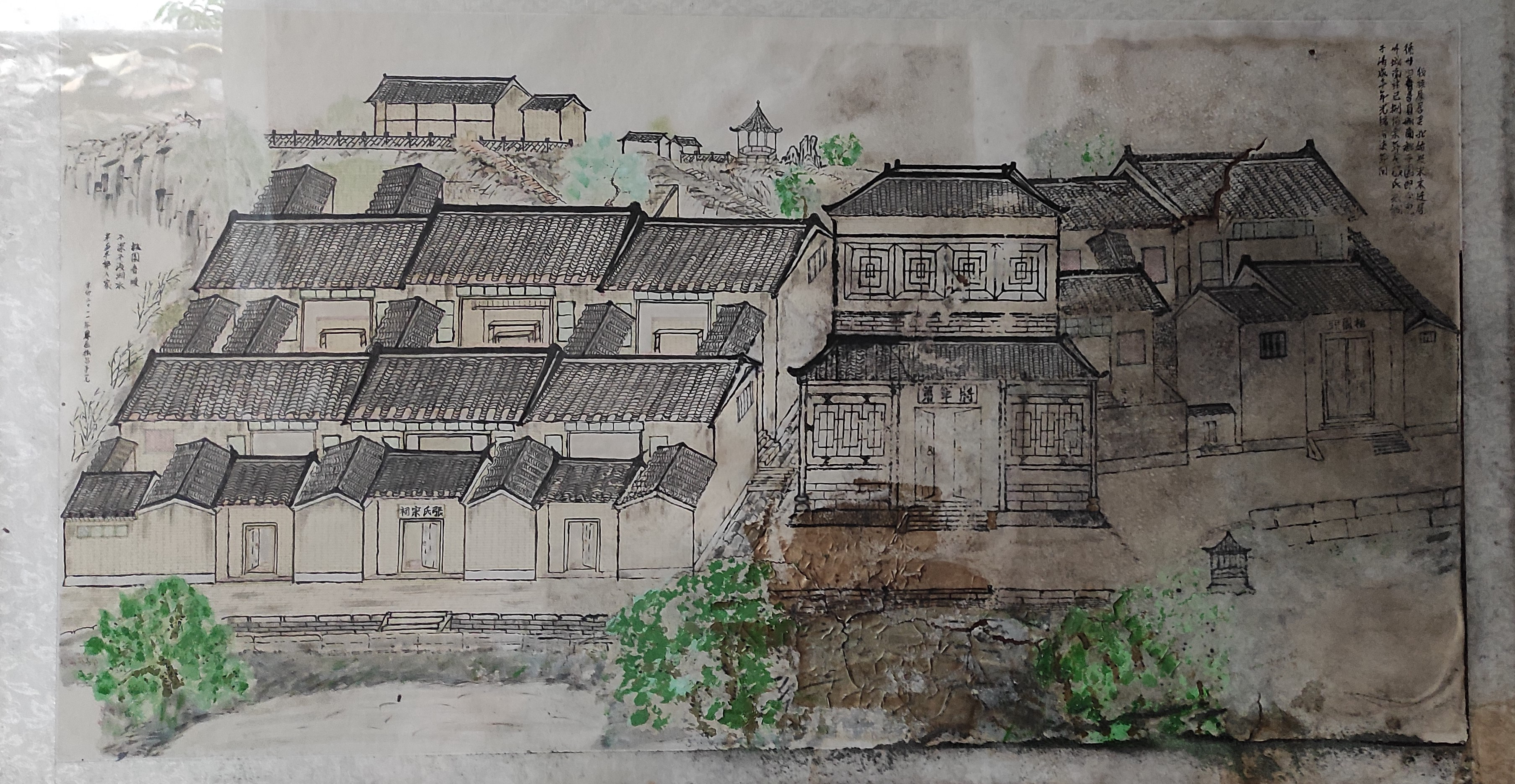 從后人的繪圖來(lái)看,張氏古建筑順著木荊岡的山勢(shì)而建,由南至北,分為張氏宗祠、將軍第、桃園三部分。
