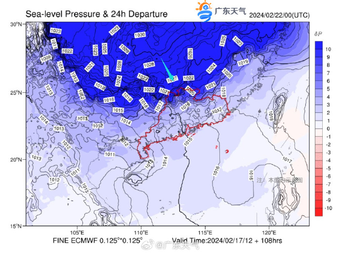 受強冷空氣影響,22~24日廣東省伴有一次小到中雨降水過程。