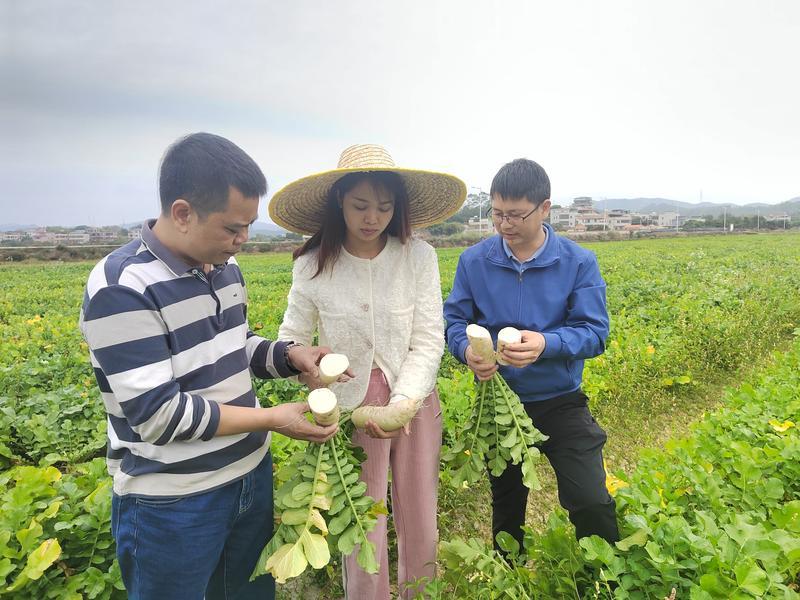在惠城區(qū)橫瀝鎮(zhèn)蔗埔村的150畝白蘿卜基地,技術(shù)人員認(rèn)真察看作物的生長情況,指導(dǎo)合作社和農(nóng)戶做好后期管理,分批分茬進(jìn)行采收,爭取產(chǎn)量和價格上的收益最大化,并提醒他們下一造種植要注意合理密植,保障作物的生長區(qū)間,在畝產(chǎn)量上獲得新增長空間。