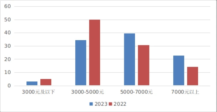 2022—2023年外出農(nóng)村勞動力月均收入分布情況