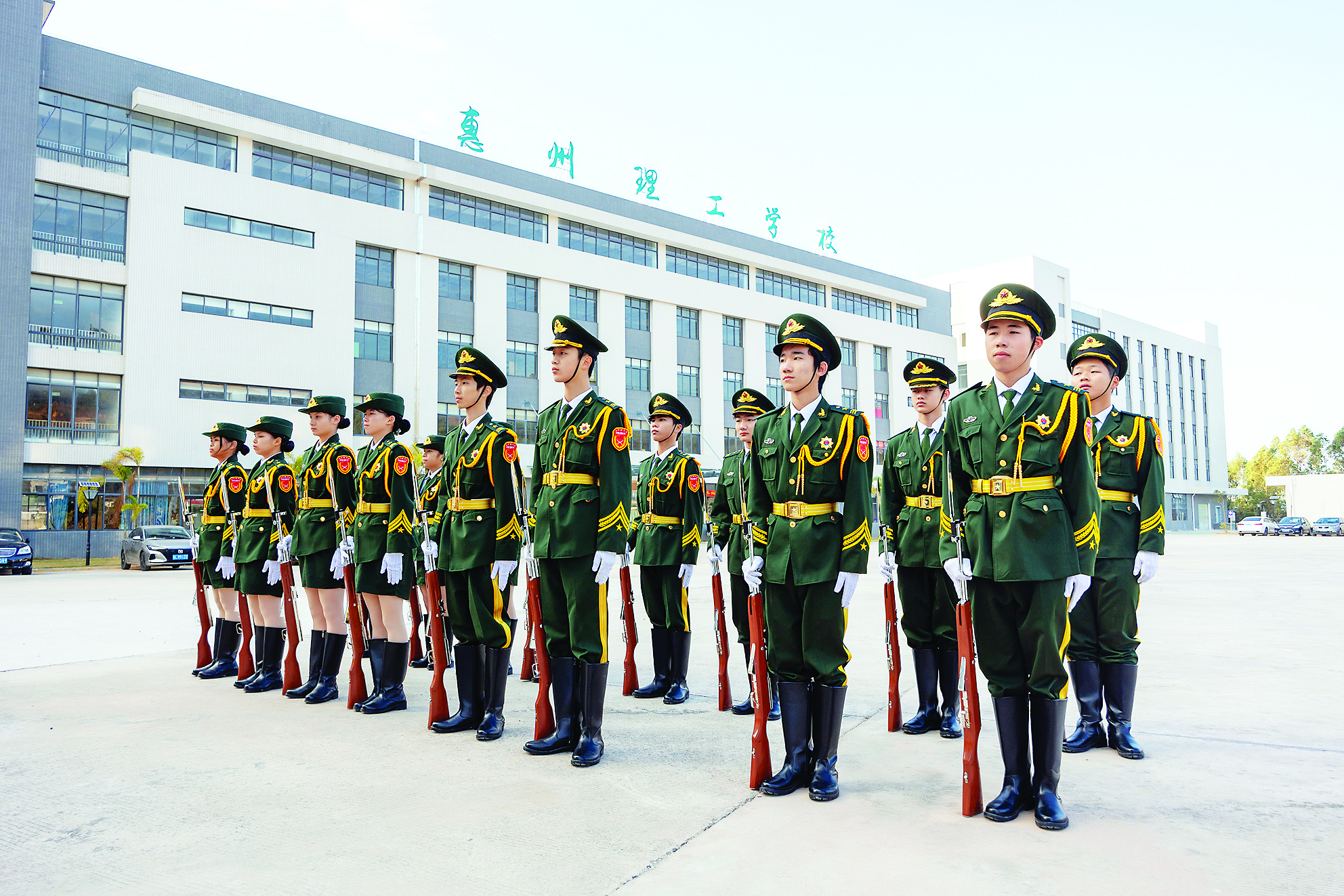 惠州理工學(xué)校學(xué)生國旗護(hù)衛(wèi)隊(duì)日常訓(xùn)練。