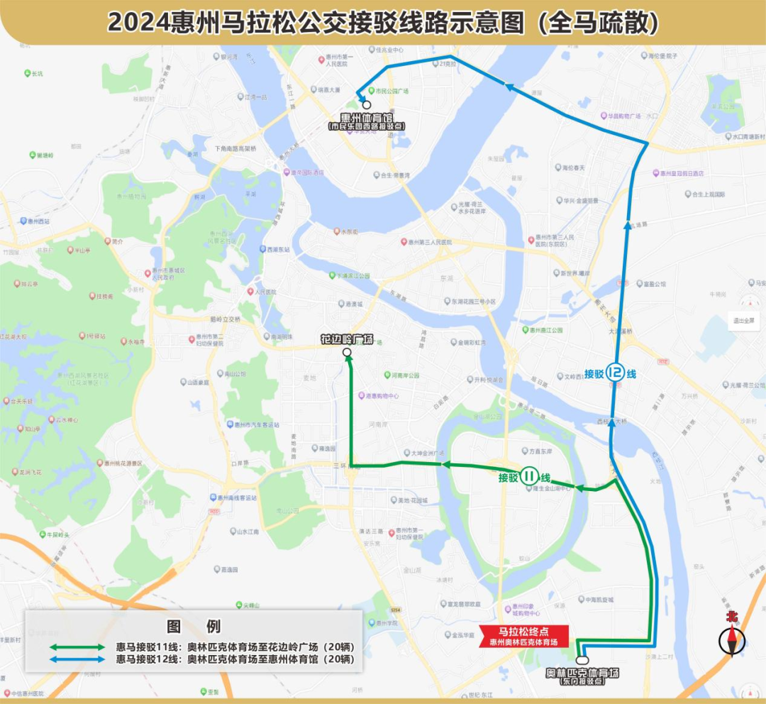 11號(hào)線接駁路線走向:奧林匹克體育場(chǎng)東門→四環(huán)南路→惠澳大道→三環(huán)南路→演達(dá)大道→花邊嶺廣場(chǎng)