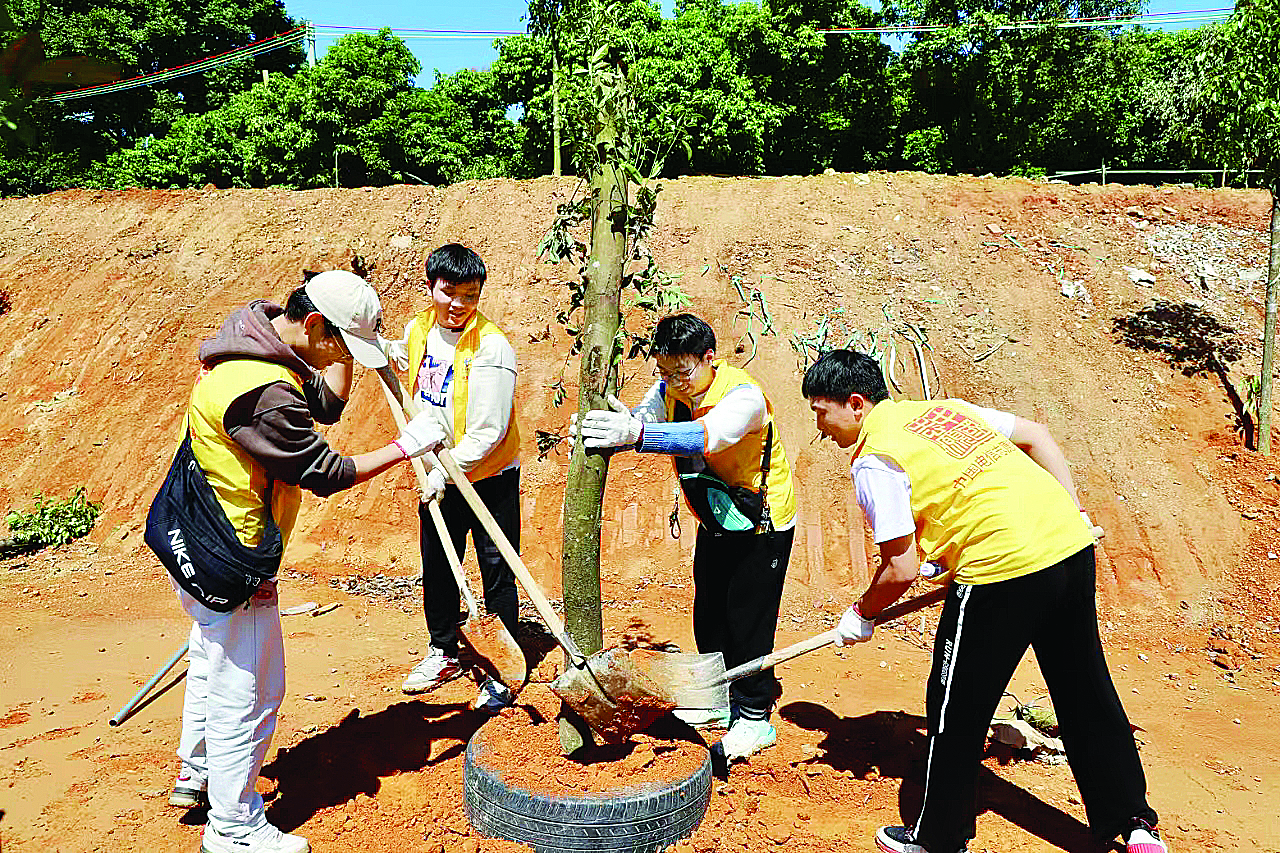 活動(dòng)現(xiàn)場(chǎng),志愿者在參與植樹。